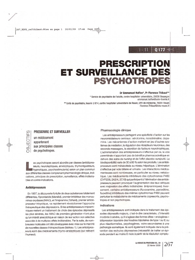 N 177 Prescription Et Surveillance Des Psychotropes Prescrire Et