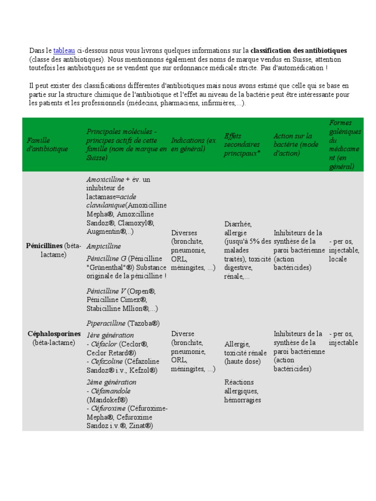 La Classification Des Antibiotiques Par Famille Type D Activite